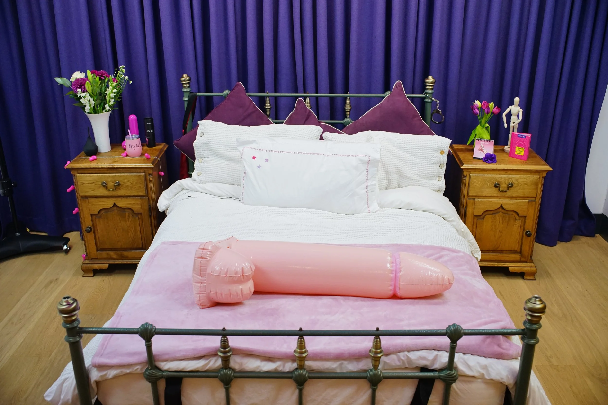 The emotion ranges from side splitting humour and total shock, to supportive empathy, depending on guests and responses. No viewer would know quite what to expect from week to week. Given the subject matter, it is important that there is an underlying ‘informative’ theme, to help listeners understand and feel comfortable with their sexuality and also feel emboldened to openly discuss such a taboo subject. The show is centred around a bed, in the hosts bedroom, on which the host interviews her ‘victims’ enjoying light bites and drinks. Guests choose their attire ranging from bed wear to full stage costume. Every guest is encouraged to bring one item from their own bedroom to make them feel even more at home!